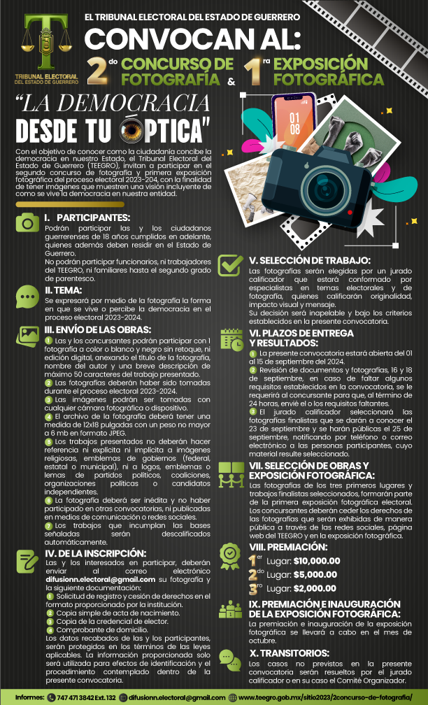 Realiza TEEGRO premiación del Concurso de Fotografía: “La Democracia desde Tu Óptica” e inaugura 1ra Exposición Fotográfica del proceso electoral 2023-2024 Bases de la Convocatoria Solicitud de Registro Cesión de Derechos